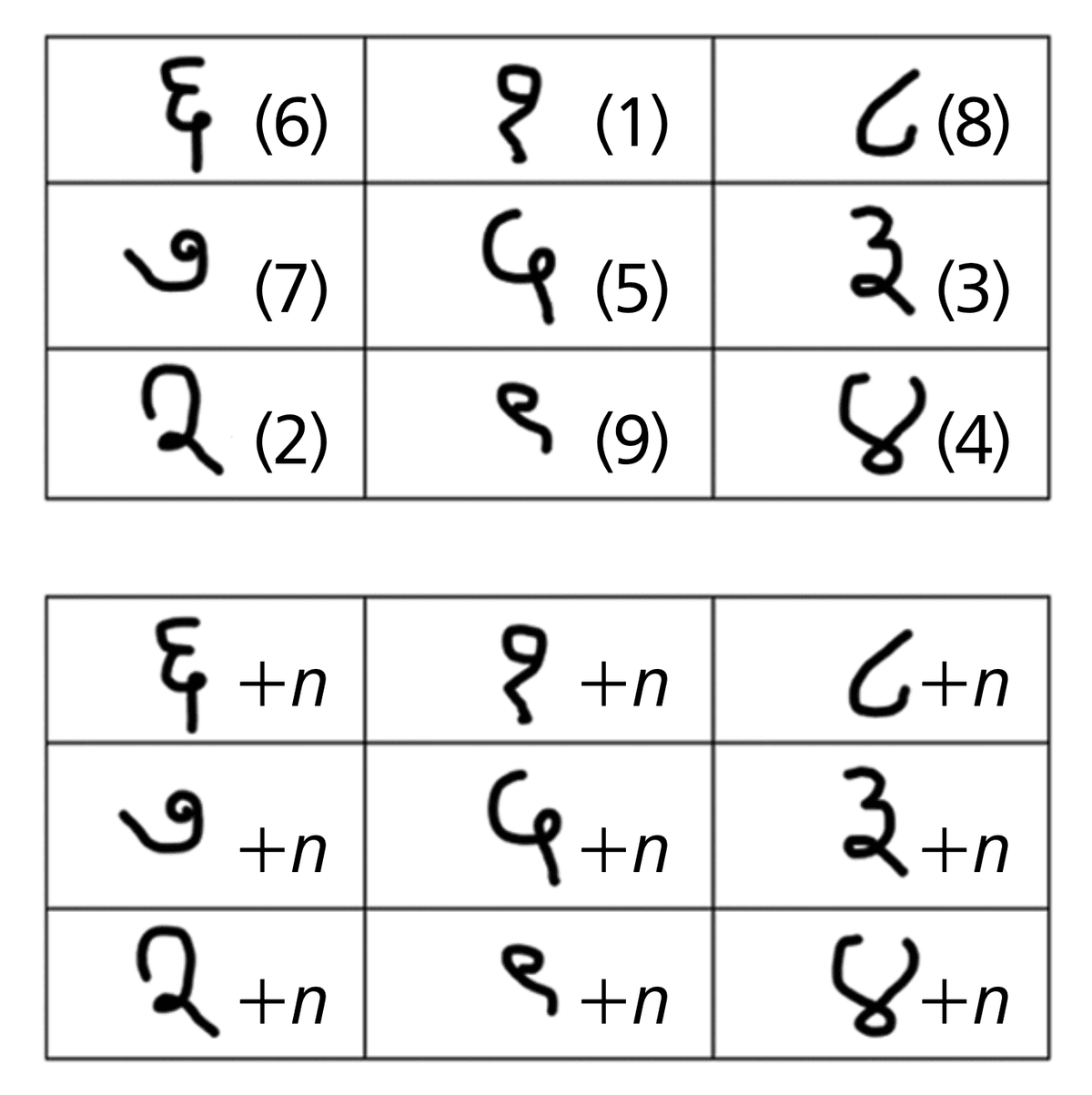 In the Vedic period astrology (Jyotisha) of India, the magic squares (anka-yantra) were used to please and worship nine planets of the solar system [9 R. C. Gupta, Mystical mathematics of ancient planets. Indian J. Hist. Sci. 40, 31–53 (2005) , 18 G. P. H. Styan and K. L. Chu, An illustrated introduction to some old magic squares from India. In Combinatorial matrix theory and generalized inverses of matrices, pp. 227–252, Springer, New Delhi (2013) ]. Figure 1 is about ancient magic squares for the Sun and the other eight planets in our solar system.