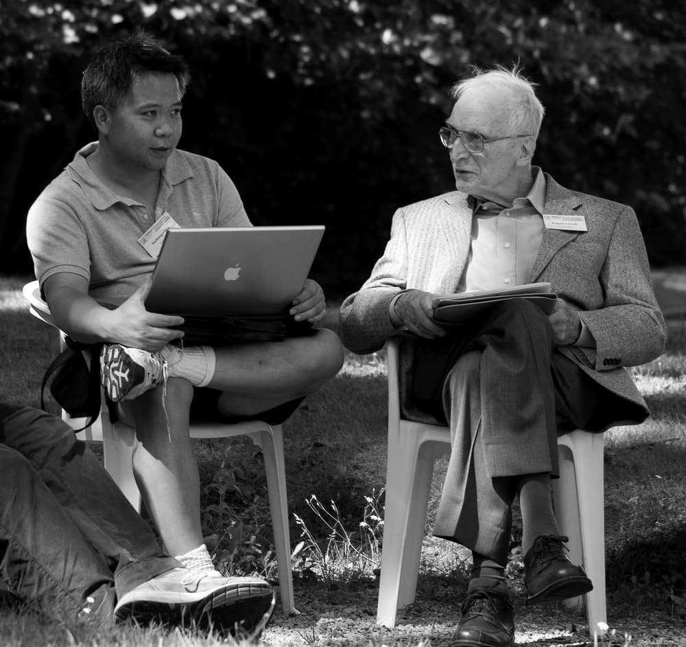 Eugenio Calabi with Xiuxiong Chen at IHÉS, 2007 (© Jean-François Dars)