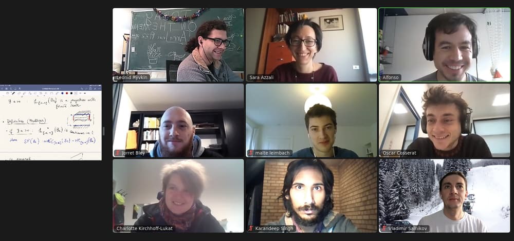 Some participants of the SFARS seminar. From top left to bottom right: Leonid Ryvkin, Sara Azzali, Alfonso Garmendia, Jorret Bley, Malte Leimbach, Oscar Cosserat, Charlotte Kirchhoff-Lukat, Karandeep Singh, Vladimir Salnikov.