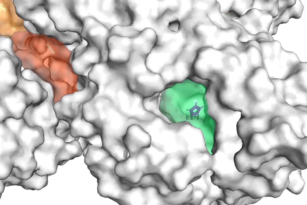 Eventually, pockets are found as the connected components of the thresholded output of the model. In this way we get an array where voxels located in a pocket are labelled with the successive number of the connected component they belong to, while they are labelled with 0 if they do not belong to a pocket. Actually, this representation is not very informative, since in the applications of pocket detection in medicinal chemistry it is desirable to compute also the druggability of the identified cavities, that is, a ranking of the pockets on the basis of their fitness to host a ligand.