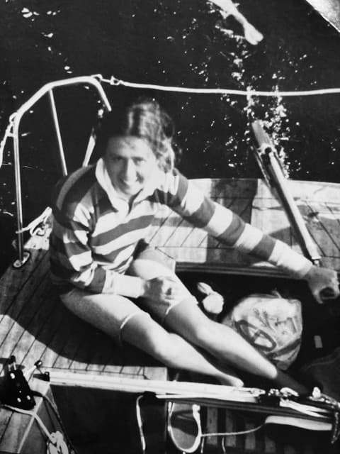Elisabetta Strickland sailing off the coast of Sardinia, 1977.