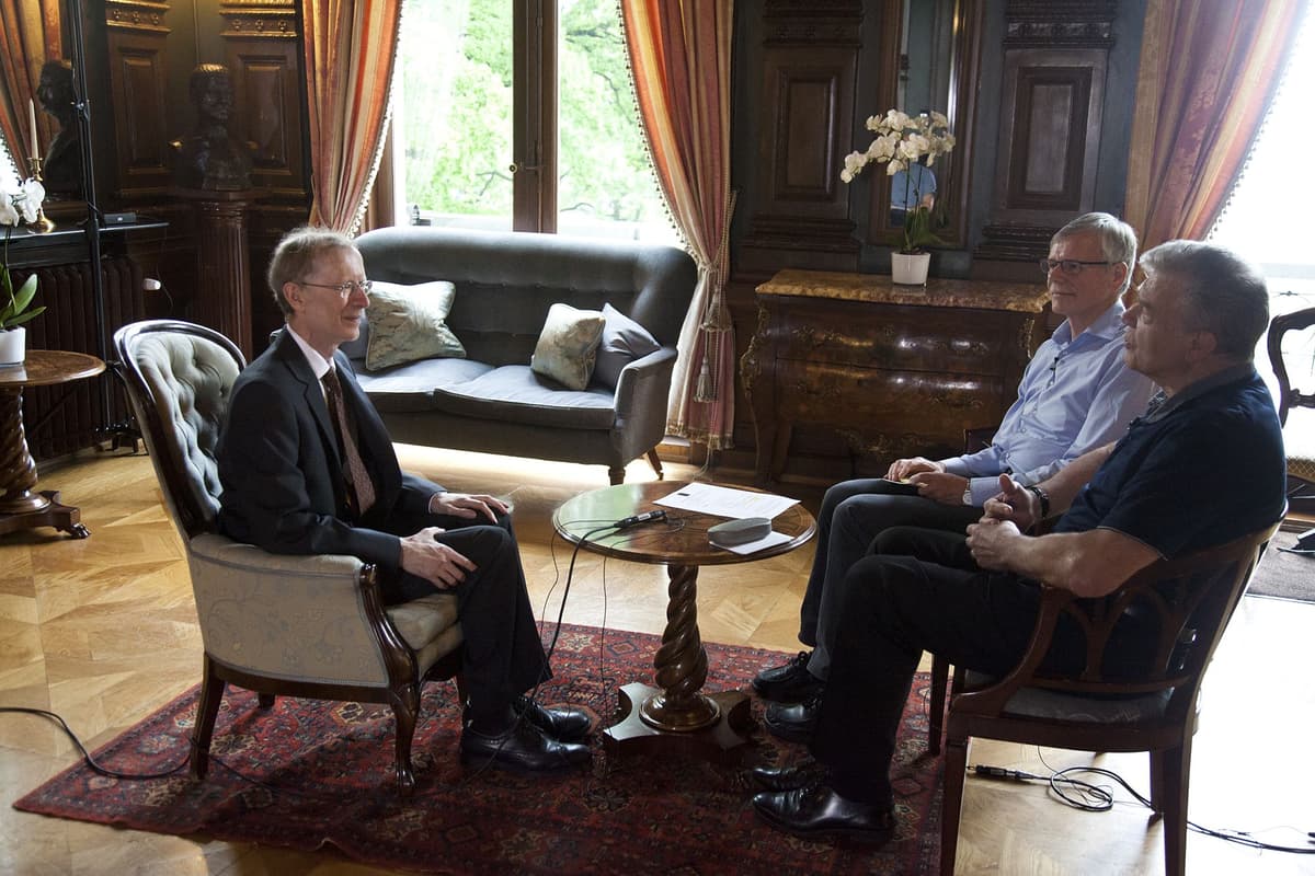 Abel interview 2016: Sir Andew J. Wiles, Martin Raussen, Christian F. Skau. (Photo: Eirik F. Baardsen, DNVA.)