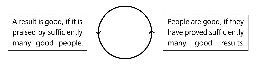 Hardy made several clever comments concerning the definition of “good” mathematics, which should be read in the original; see [5 G. H. Hardy, A mathematician’s apology. (With a foreword by C. P. Snow.) Canto, Cambridge University Press, Cambridge (1992) , p. 89]. However, in real life one falls the circulus vitiosus shown in Figure 1.