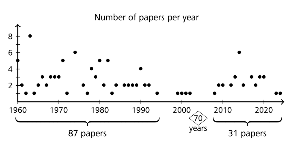 Figure 2 illustrates the time distribution of my 122 papers. Note that the irregularity in the period from 1996 to 2007 is caused by my work for the German Research Foundation and by writing the “History” book.