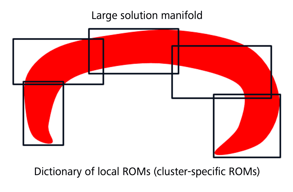 To tackle poorly reducible problems, we focus on creating a dictionary of local physical ROMs using piecewise linear data compression, by clustering the outputs fields, see Figure 2.