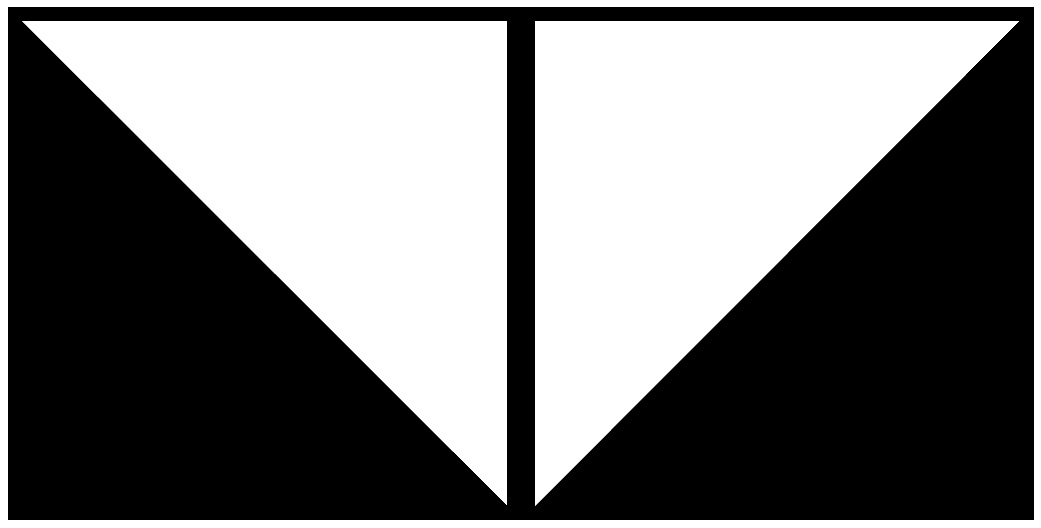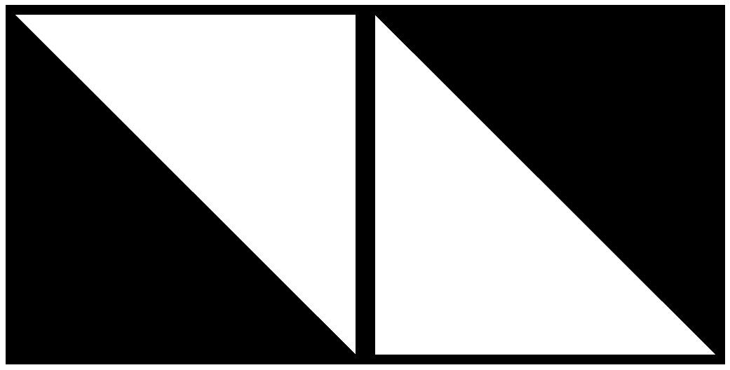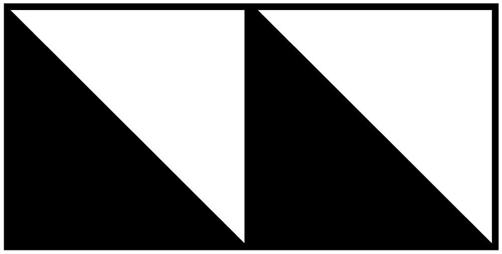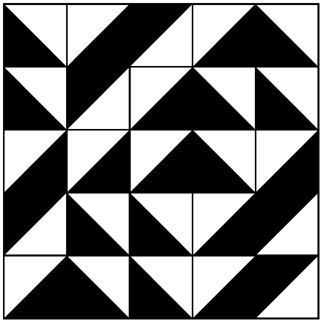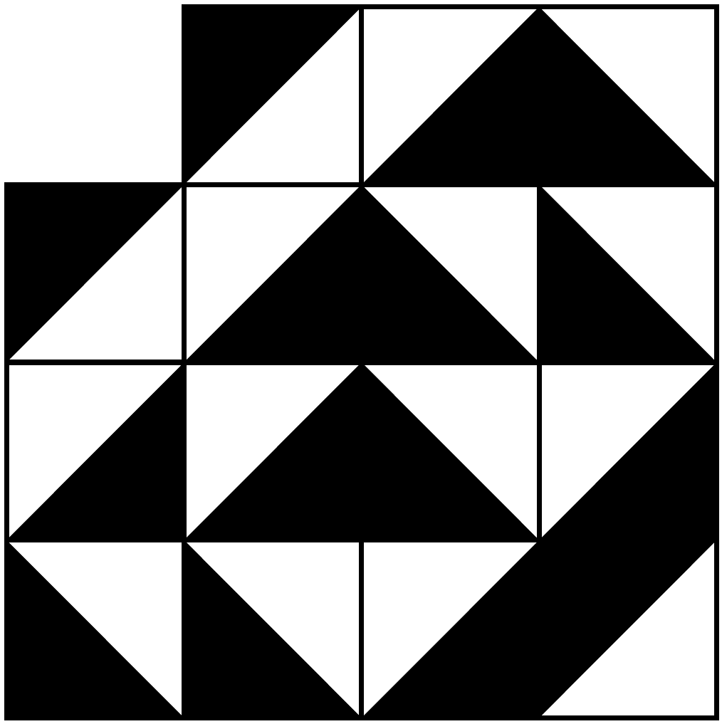 The first mathematical ingredient in the series Transitions, the Truchet tile, is itself at the crossroads of science and art, as we shall see. It takes us back to an important milestone in the development of combinatorics, when Father Sébastien Truchet (1657–1729), mathematician, typographer, “clockmaker, great canal specialist, inventor of countless machines (cannons, tree-transplanting machines, sundials, etc.) including the famous mechanical tables of Marly” [1 J. André, De Pacioli à Truchet: trois siècles de géométrie pour les caractères. In 4000 ans d’histoire des mathématiques: les mathématiques dans la longue durée. IREM de Rennes, Rennes, France (2002) https://bibnum.publimath.fr/IWH/IWH02004.pdf], became interested in the different relative positions of two squares, both divided into two colors: given two identical squares, split in two along the diagonal, with one half white and the other black (see Figure 2), in how many ways can they be arranged in relation to each other?