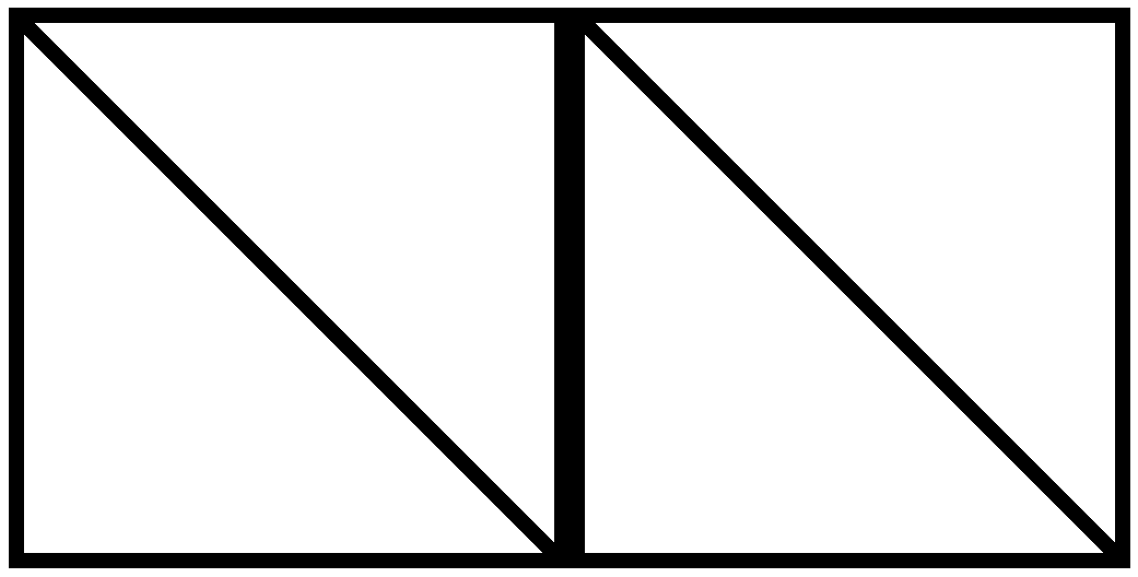 We now add a diagonal to each: there are, a priori, two possible choices of the diagonal in each of the two squares, so four possibilities; but they are two by two identical by flipping, which leaves us with the two configurations: